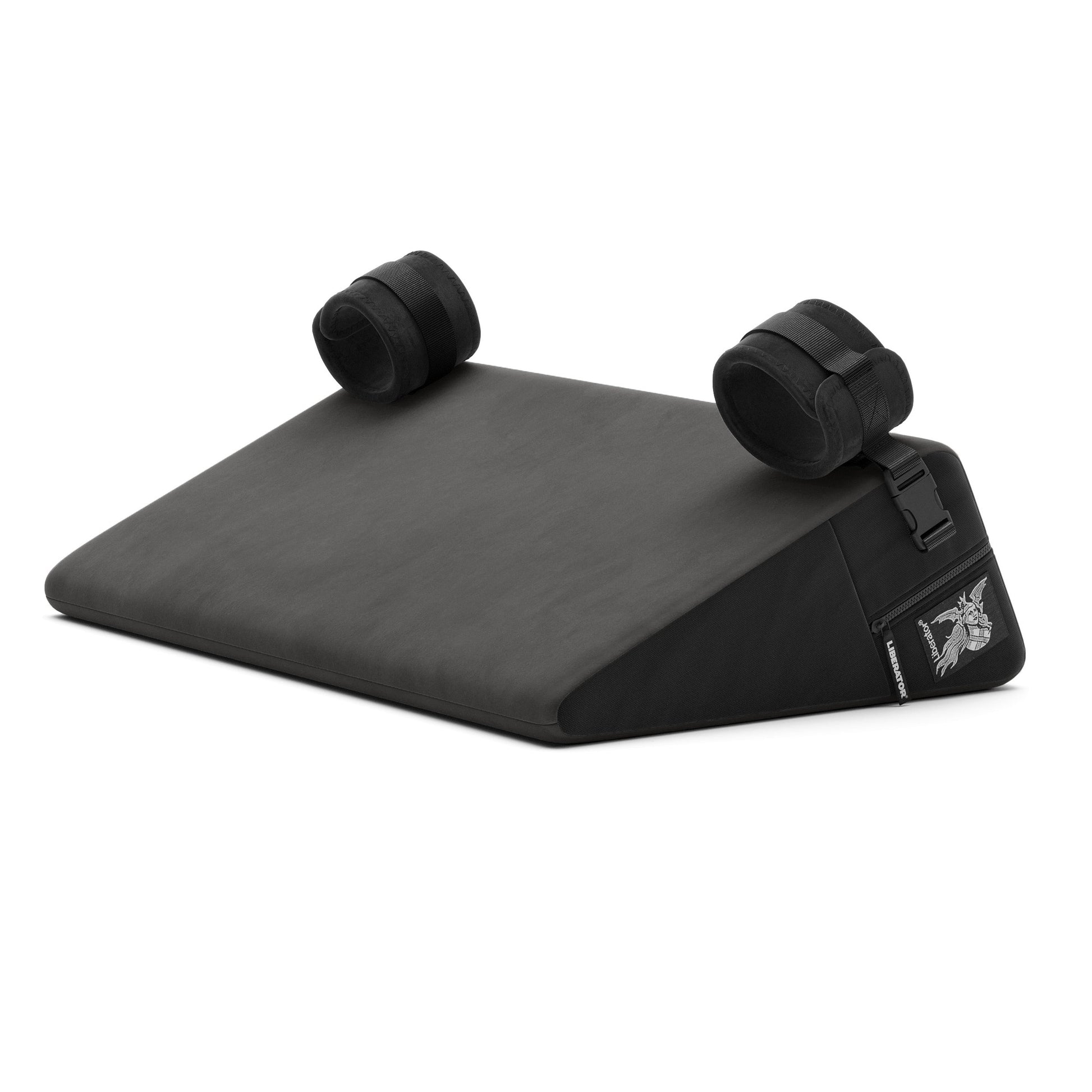 Compact and angled for oral, missionary, and doggy style. Lifts hips, relieves neck strain, and keeps play stable with cuff-ready restraint points. -